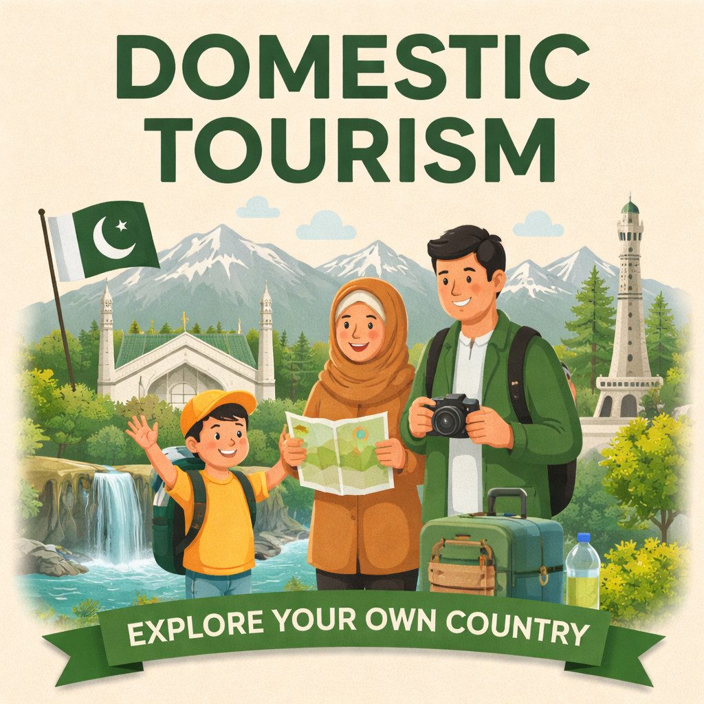 Domestic tourism means traveling within your own country, like visiting another city or tourist place inside your nation.